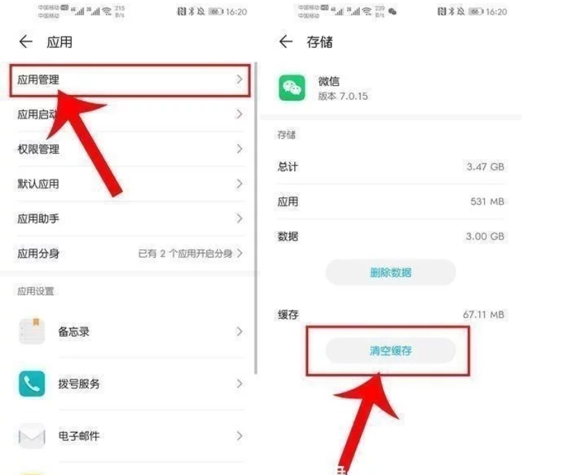 3.清理软件缓存 这种清理方法比较缓慢,而且容易误删重要数据,但也是清理效果最好的一种。这种方法就是清除应用数据,只要按照笔者的方法来就不会删除重要数据哦!设置—应用—应用管理—随便点击一个应用—储存,如果是不重要的应用就点击【删除数据】,如果是QQ、微信等比较重要的应用,就点击【清空缓存】选项。